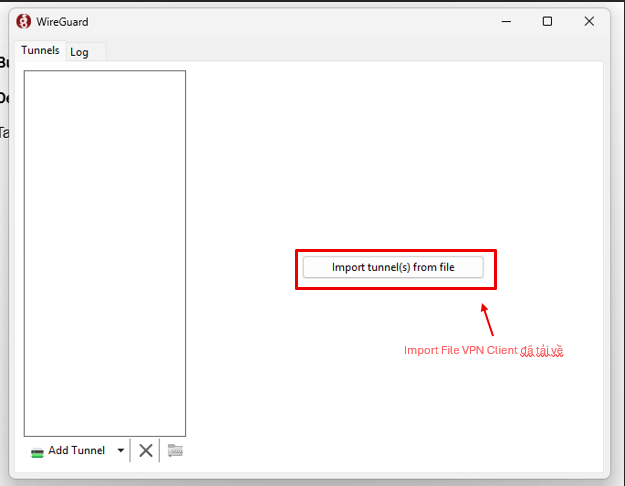 Tải ứng dụng khách Wireguard và nhập tệp cấu hình để kết nối với máy chủ.