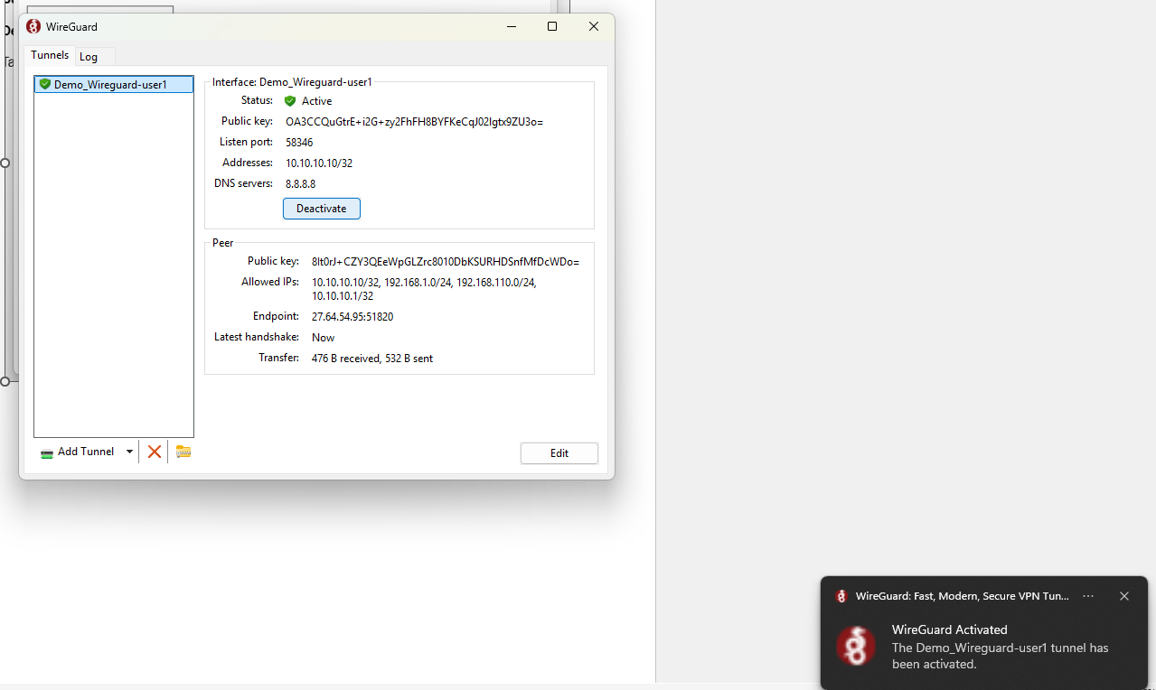 Vậy là điện đã kết nối VPN Wireguard thành công.