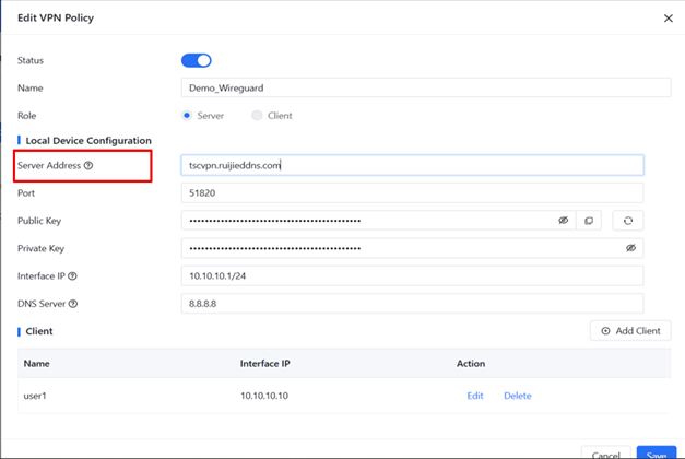 Vậy là đã đã tạo xong thành công Client VPN và về cơ bản đã cấu hình thành công VPN WireGuard trên thiết bị Smart Gateway Ruijie.