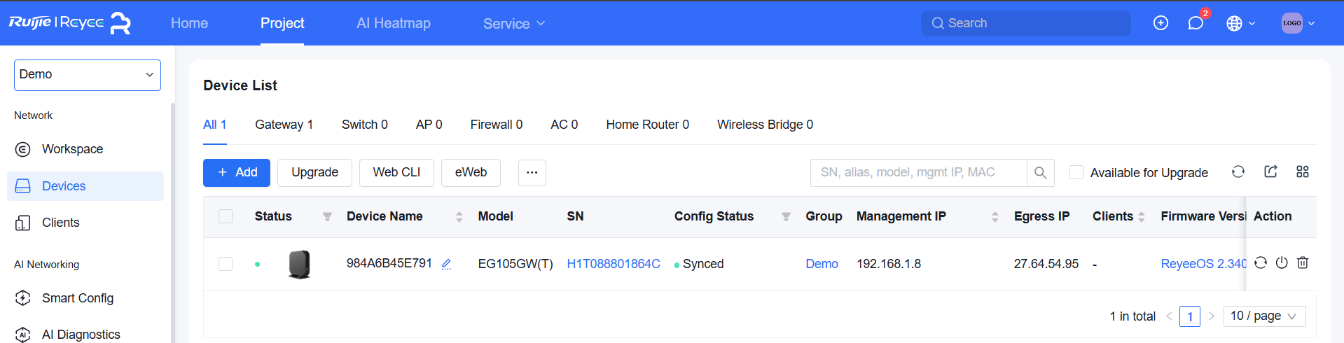 Bước 1: Thêm thiết bị lên Ruijie Cloud
